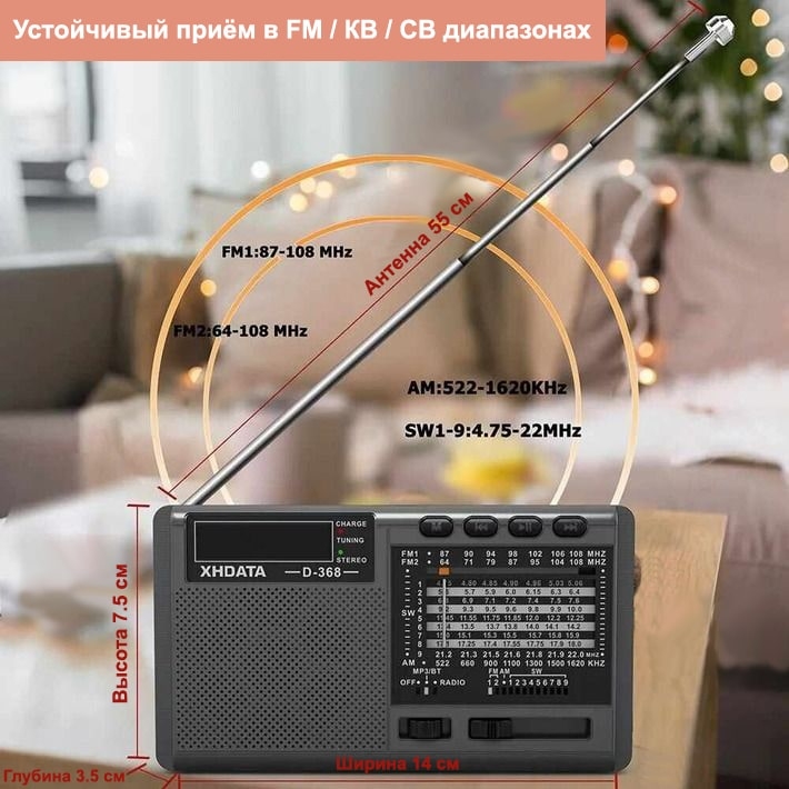Особенности портативного радиоприемника с расширенным FM XHDATA D-368