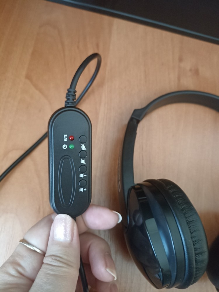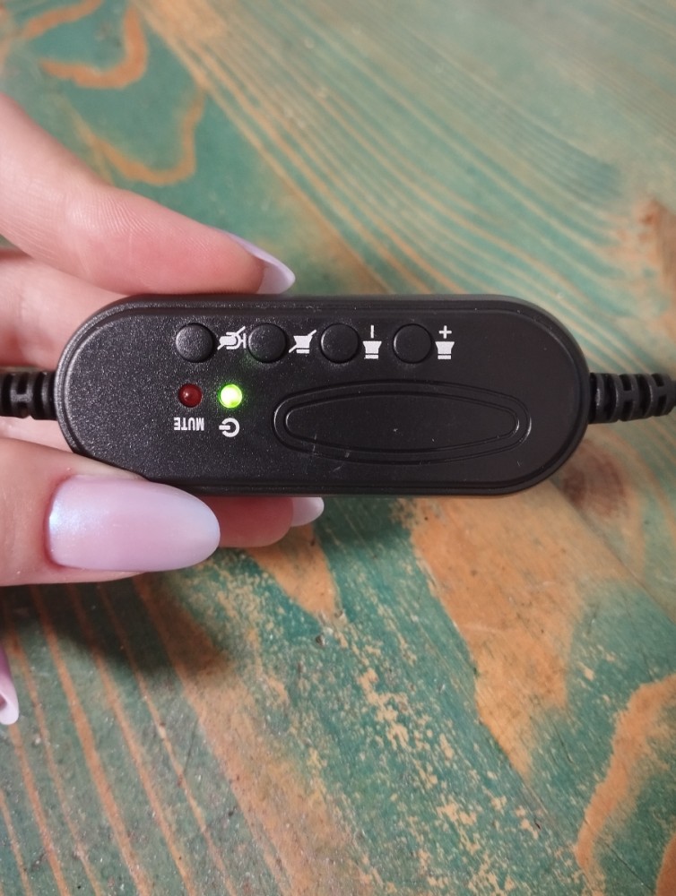 На кабеле расположен цифровой пульт управления со светодиодными индикаторами состояния. Возможно регулирование громкости, отключение микрофона.