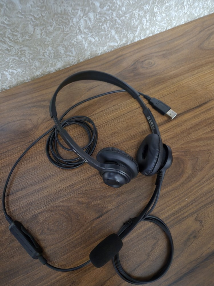 Гарнитура удобная и легкая. Уши не давит. Хороший диапазон регулировок. Микрофон откидывается и гнется. Чувствительность микрофона хорошая. Но и шумы тоже собирает. Динамики громкие, для прослушивание голоса качества хватает. Длины кабеля мне хватает