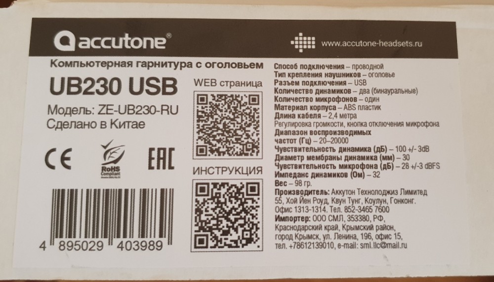 гарнитура для компьютера с микрофономAccutone UB230 USB