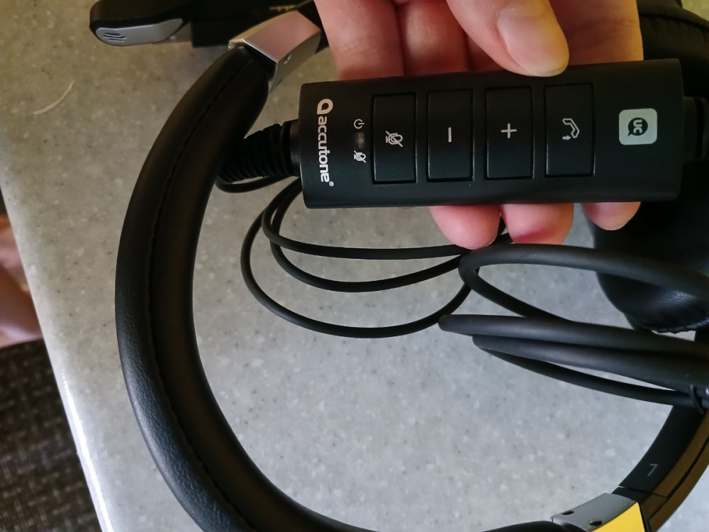 Принцип работы активного шумоподавления Accutone состоит в следующем. В микрофонном держателе находятся сразу два микрофона. Основной из них обращен к лицу оператора, как это и сделано во всех гарнитурах. Дополнительный микрофон развернут в противоположную от пользователя сторону. Звуки, поступающие из обоих микрофонов, усиливаются абсолютно идентичными усилителями, но затем сигнал дополнительного канала инвертируется. Полученные сигналы поступают на устройство сложения. Шумы, приходящие из помещения вокруг оператора, попадают в оба микрофона с одинаковым уровнем. И в устройстве сложения два идентичных сигнала, но разные по модулю (за счет инверсии), взаимно компенсируются.