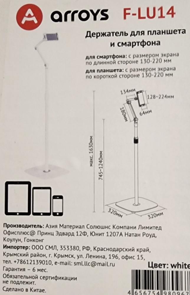 • Совместимо с мобильными устройствами с размером одной из сторон 130-220 мм