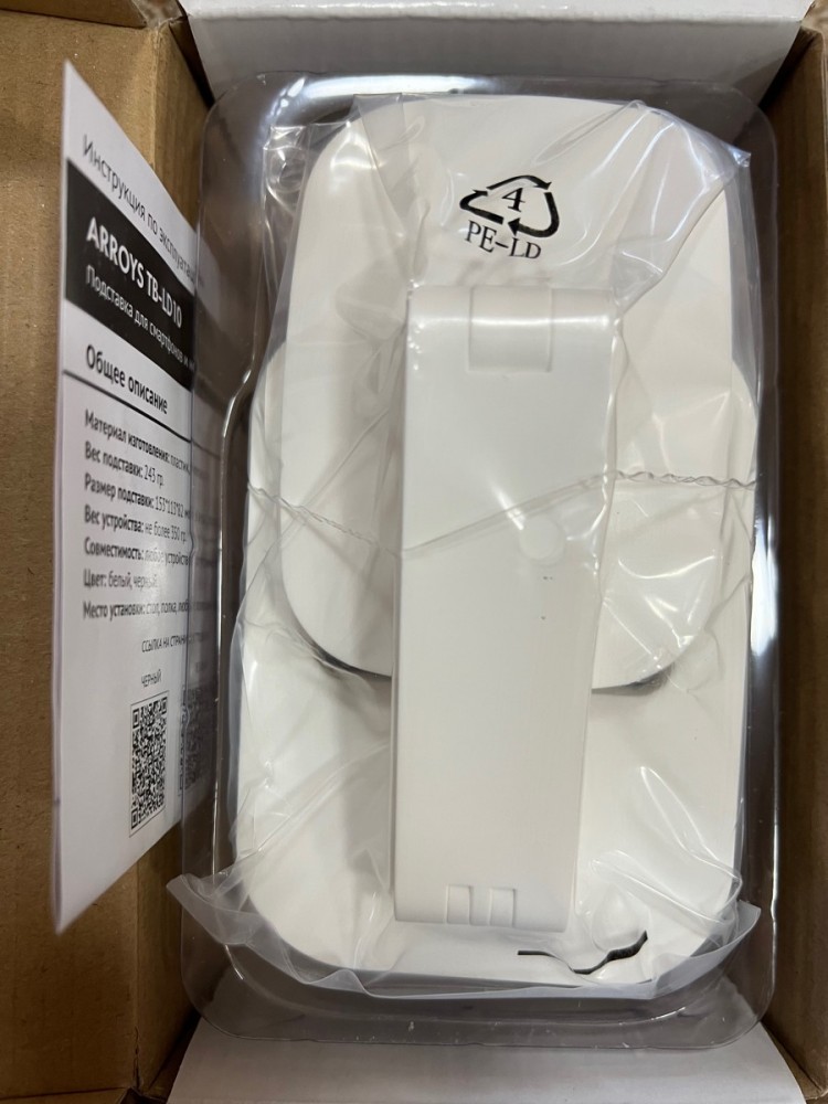 Arroys TB-LD10 изготовлена из качественного пластика, к основанию размером 113*82 ммприкручена стальная пластина для утяжеления. Это позволяет пользоваться телефоном, установленным на подставку, без ее опрокидывания.