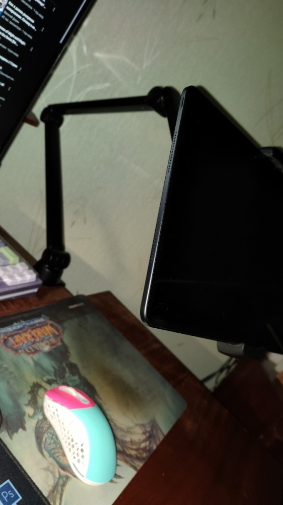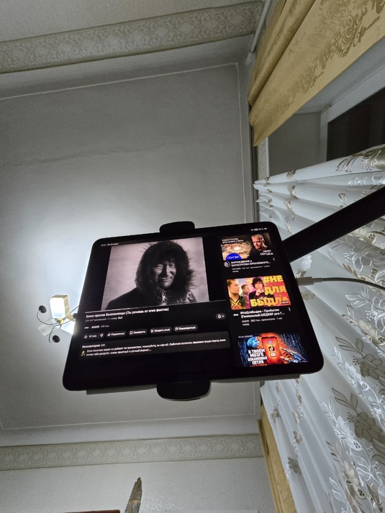 Зажим девайса выполнен из пластика, он соединен со штангой шаровым шарниром, поэтому можно устанавливать любой угол обзора экрана.