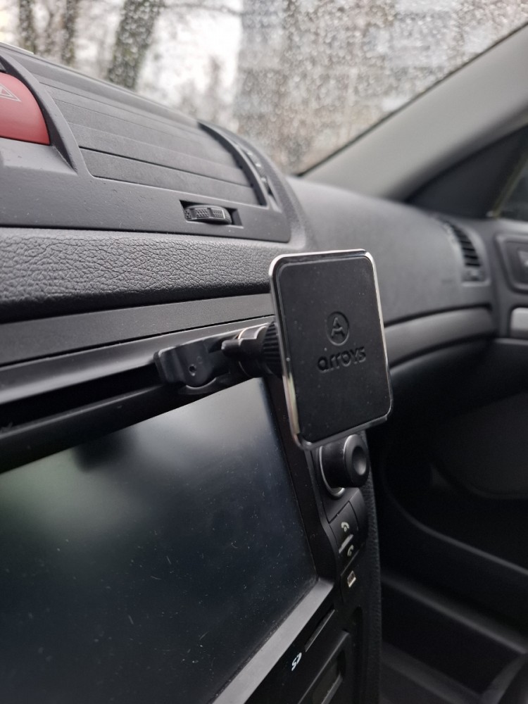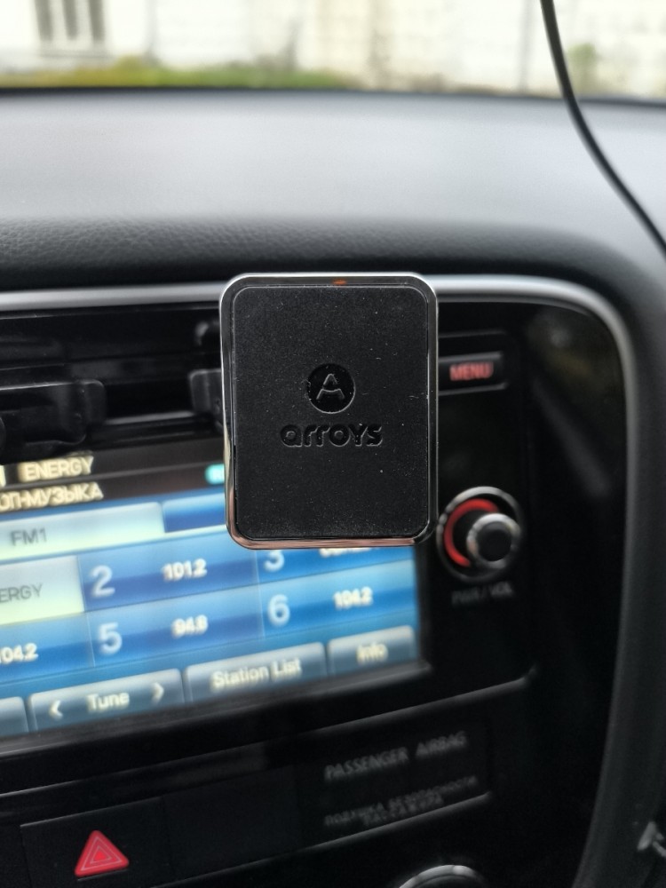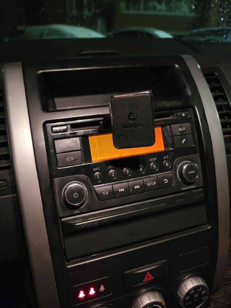 Модель магнитного автомобильного держателя с креплением в CD-слот Arroys CD-SM1 - одно из лучших предложений в рынке. Она исключительно компактная, размер основания в ширину - всего 55 мм, изготовлена из качественных материалов и сама конструкция устройства сделана так, что крепление в слоте CD очень надежно. Три лопасти основания вставляются в проем CD магнитолы авто и разжимаются внутри слота с помощью крутящегося фиксатора. Доступ к элементам управления панели CD практически не ограничивается за счет маленького размера держателя. Рекомендуется размещать автодержатель не по центру слота, а слева или справа.
