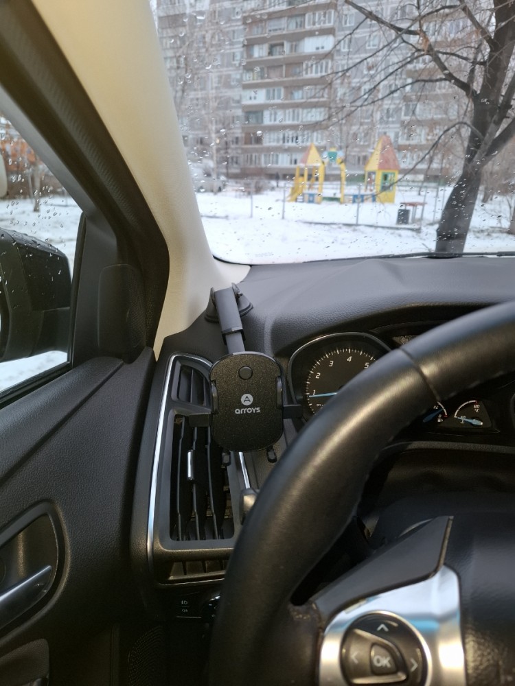 Автомобильный держатель Arroys Dash-MT2 крепится на лобовое стекло или приборную панель с помощью вакуумной присоски диаметром примерно 65 мм. Зажим смартфона автоматический. При установке в держатель корпус смартфона нажимает на кнопку и зажим закрывается автоматически. Для извлечения смартфона из держателя необходимо нажать кнопки сбоку. Все это делается очень удобно одной рукой. Если экран девайса широкий, то надо на кнопки надеть удлинительные колпачки. Держатель совместим со смартфонами с экраном шириной от 55 до 95. мм.