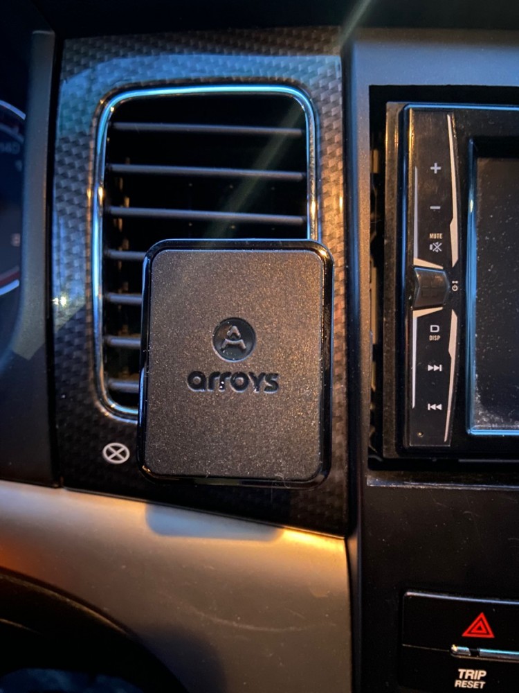 Само крепление на вентиляционную решетку - достаточно удобный способ, позволяющий разместить смартфон под рукой и с хорошим визуальным обзором. Чтобы горячий воздух из дефлектора не повредил смартфон, заслонку этой секции, как правило, перекрывают. Держатель устанавливается на вторую снизу лопасть решетки. При этом, он должен быть вставлен внутрь до конца, чтобы антивибрационная пластина уперлась в дефлектор. С помощью вращающегося "барашка" затягивается зажим крепления держателя в воздуховоде. В отличие от дешевых вариантов держателей в вентиляцию, которые крепятся только на упругости пластика, Arroys Vent One держится очень надежно и не вибрирует при езде. Он точно не вынется из решетки сам по себе, когда вы захотите снять телефон с магнитной "головы".
