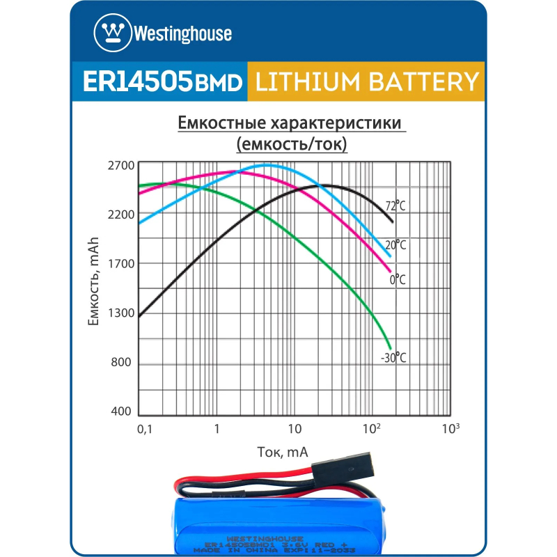 батарейки 3.6 В с коннектором Dupont 2,54 (BLS-2) Westinghouse ER 14505BMD1 (AA) connector 3шт.