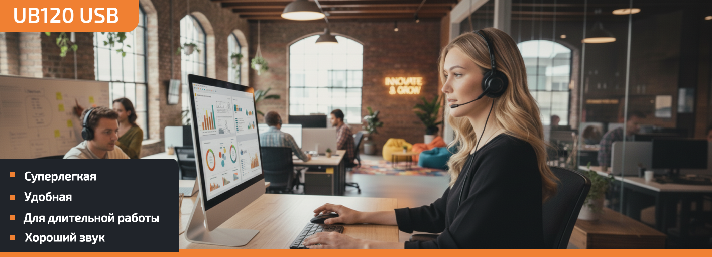 Легкие, удобные, очень популярные Наушники с микрофоном Accutone UB120 USB