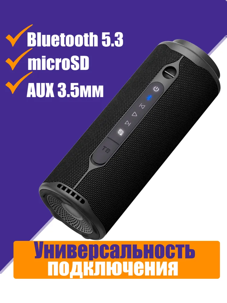 Воспроизводите музыку с карты памяти MicroSD. Встроенный аудиовход AUX-in 3.5 мм разрешает подключаться к аналоговым источникам с помощью аудиокабеля